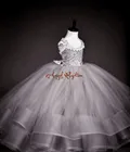 Best Deal on 2016 princess silver gray/ice blue flower girl dresses 1-14 years lace junior kid glitz pageant dress for wedding and party
