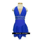 Best Deal on Customized Costume Ice Skating Figure Skating Dress Gymnastics Blue Stripe Adult Girl Skirt Performance Competition Rhinestone