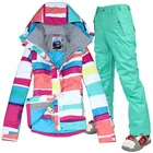 Best Deal on Gsou snow brand High Quality Skiing set + winter coat set Rainbow+Cotton Waterproof Woman ski jackets+pants snowboard suits