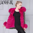 Best Deal on DHL Fast Shipping Hot Pink Thick Part Fox Fur Trimmed Luxury Ladies Fashion Short Parka Jacket