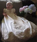 Best Deal on Embroidery Beaded Christening Gown Baby Dresses Newborn Outfit White/Ivory Custom Lace Baptism Robe With Bonnet 0-12 Month 2016