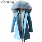 Best Deal on Women Winter Parkas Large Real Raccon Fur Parka Blue Faux Fur Liner Thickening Long Jacket Overcoat
