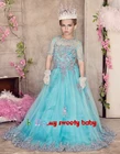 Best Deal on Little Girls Dress Crew Neckline Tulle Short Sleeve Blue Crystal Beading Sequins Appliques Little Girls Pageant Dresses Princess