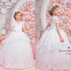 Best Deal on White Little Girls Party Dresses Long Sheer Crew Neckline Short Sleeve Lace Puffy Ball Gown Little Flower Girls' Dresses 2016